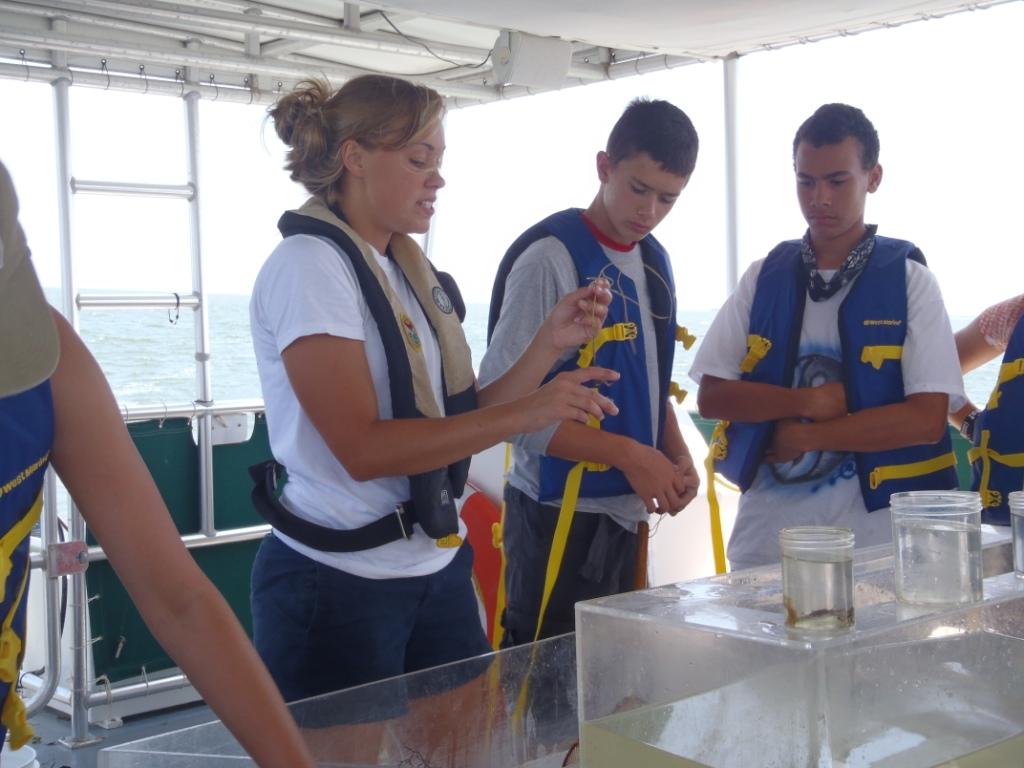 Following that rewarding experience, the group boarded the Inland Seas Education Association’s schooner for a technical study of the lake. While on the schooner, students pursued their own questions about the lake’s hydrology. One group studied the presence of micro-plastics and discussed the big impact that such small plastics have on marine life. The other group used the EPA’s HydroLab (submersible sensor instrument) to compare the relationship between diversity in plankton species and the pH of the water. Both groups were able to produce interesting results from their research projects!
