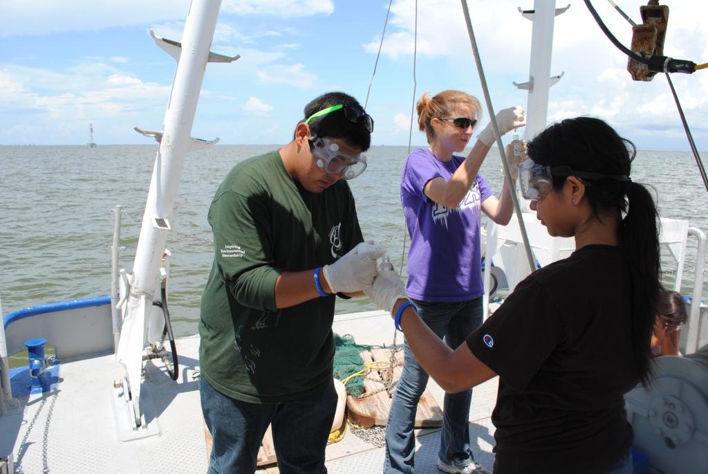 Students began their adventure at a research station in Manchac, Louisiana. (Manchac means “back door” in the Choctaw Indian language and is in fact the rear entrance to Lake Pontchartrain and the Gulf of Mexico.) They learned that this region loses a football field of land to the sea every 45 minutes as a result of the levying of the Mississippi River. In the swamps they saw the effects of logging on the area’s biodiversity. They toured the Mississippi River and learned that, despite all the management and levees, the river is still “mighty” and that reconnecting the river to the swamps restores the ecosystem. Students toured New Orleans’ hurricane-devastated Lower 9th Ward and talked to people there about the rehabilitation of the area from a human and conservation perspective. The trip culminated with a day at Louisiana Universities’ Marine Consortium in Cocodrie, LA, literally the end of the road. Students collected and sampled water out on the Gulf on a research vessel while porpoises swam alongside the boat.